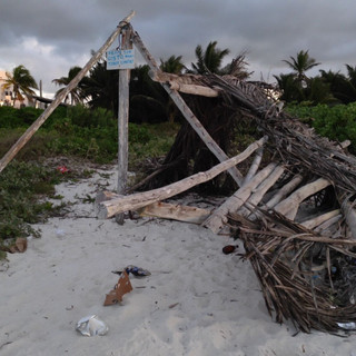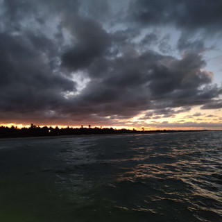 Wir haben dann einen Taxifahrer auf 350 runter gehandelt. Angekommen sollte ich mit einem Zahlcode meinen Schlüssel bekommen. Da war aber anscheinend noch jemand zu Gast oder es wurde noch nicht geputzt! Nach einer kurzen booking.com Kommunikation kam dann fünf Minuten später die Putzfrau und als Wiedergutmachung bekomme ich die dritte Nacht gratis. Also gut, claro que sí! So sieht es abends am 2 Minuten von mir entfernten Strand aus