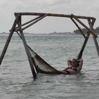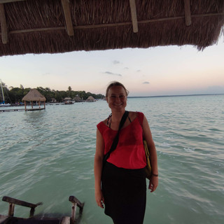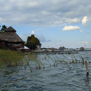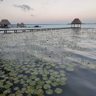 In Bacalar waren Drew und ich an der Lagune spazieren und kurz schwimmen. Mir gefällt es hier sehr gut, Süßwasser ist so unkompliziert und man kann schön ohne Wellen schwimmen