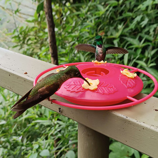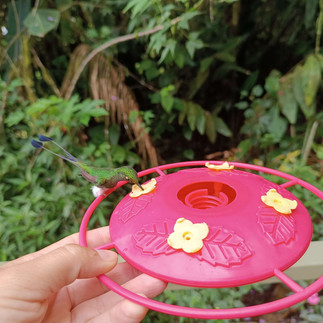 Ich habe wertvolle 15 min verloren, da ich auf die Toilette wartete. Und dann ging es auch schon weiter, zu den Kolibris, die sich an Nektarstationen volllaben.