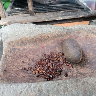 Die Kakaobohnen haben eine süße Außenschicht (mucílago), die über ein Fermentationsprozess durch Hefe-Bakterien in den sie bedeckenden Bananenblättern auf natürlichem Wege entfernt wird, das dauert 5-15 Tage. Diese fruchtige Schicht benutzt man zur Wundheilung oder wird einfach gelutscht.