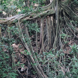 Es gibt einen Baum mit schönen Wurzeln, den ich besucht habe