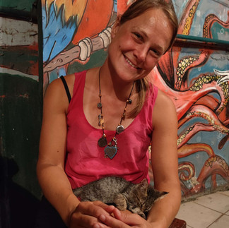 Abends vor der Abfahrt habe ich mich nochmal um die Katzen gekümmert und ihnen was zu essen gegeben. Die ein Monat alte Katze ist dann auf meinem Schoß eingeschlafen