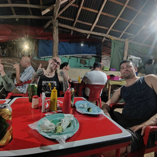 Heute morgen im Hostel in playa del carmen traf ich auf Shelby und Chris, die im gleichen Hostel geschlafen hatten, ohne dass ich das wusste und Larissa aus Deutschland, mit der ich die lustige Partynacht verbracht hatte, ist hier in Akumal. Und zwei Spanier aus Pamplona. Wir waren Quesadillas essen und Bier trinken