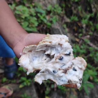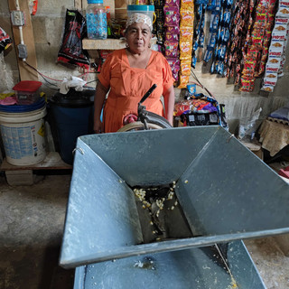 Die Kids kamen dann auch zeitgleich aus der Schule, und der Caldo war schon am kochen, ich hatte verpasst, wie die Schwester von Linda zwei Hühner geschlachtet und gerupft hatte und die Zubereitung der Suppe. Die gab es allerdings erst zu Abend. Als ich kam, hab ich Yams bekommen. Der Caldo ist mit Chayote, Hühnchen und die rote Farbe hat es von der Achiote Paste (Annato), die dem ganzen einen rauchig - erdigen Geschmack verleiht (so wie ne BBQ sauce)