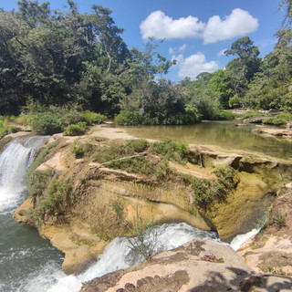 Ich bin dann mit dem Bus zu den größeren Wasserfällen, bin aber vom Hocker gefallen, als es 20BZ (10€) Eintritt gekostet hat. Ich hatte nur noch Geld für den Bus zurück und mein Wasser war knapp, aber der war so nett, dass ich später 10BZ zurück bekam. Überhaupt habe ich nicht vieles mitgenommen und bin sogar Maya mäßig mit den Badelatschen dahin, ja ich kann das mittlerweile ganz gut Berg runter durch den Matsch und Dschungel.