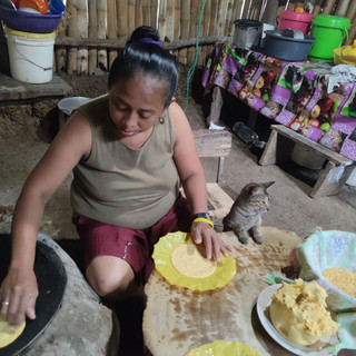 Ich hab heute meine ersten Tortillas gemacht, da ist nur gekochter Mais in der'massa', die isst man jeden Tag, zu jedem Essen und bereitet sie dann immer frisch zu.