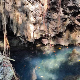 Dort habe ich eine Gruppe von drei Leuten getroffen, und als wir uns weiter unten wieder trafen, fragten sie mich, ob sie mich mitnehmen können. Ich wollte ja noch auf die Ostseite laufen und als wir mit dem Golfcart fuhren, sind wir noch kurz zum Mini-Flughafen, da sind wir noch die Landebahn entlang gedüst, um dann zu einer Cenote zu fahren. Ich hab gesehen, wie lang und unerträglich heiß es gewesen wäre, hier lang zu laufen.